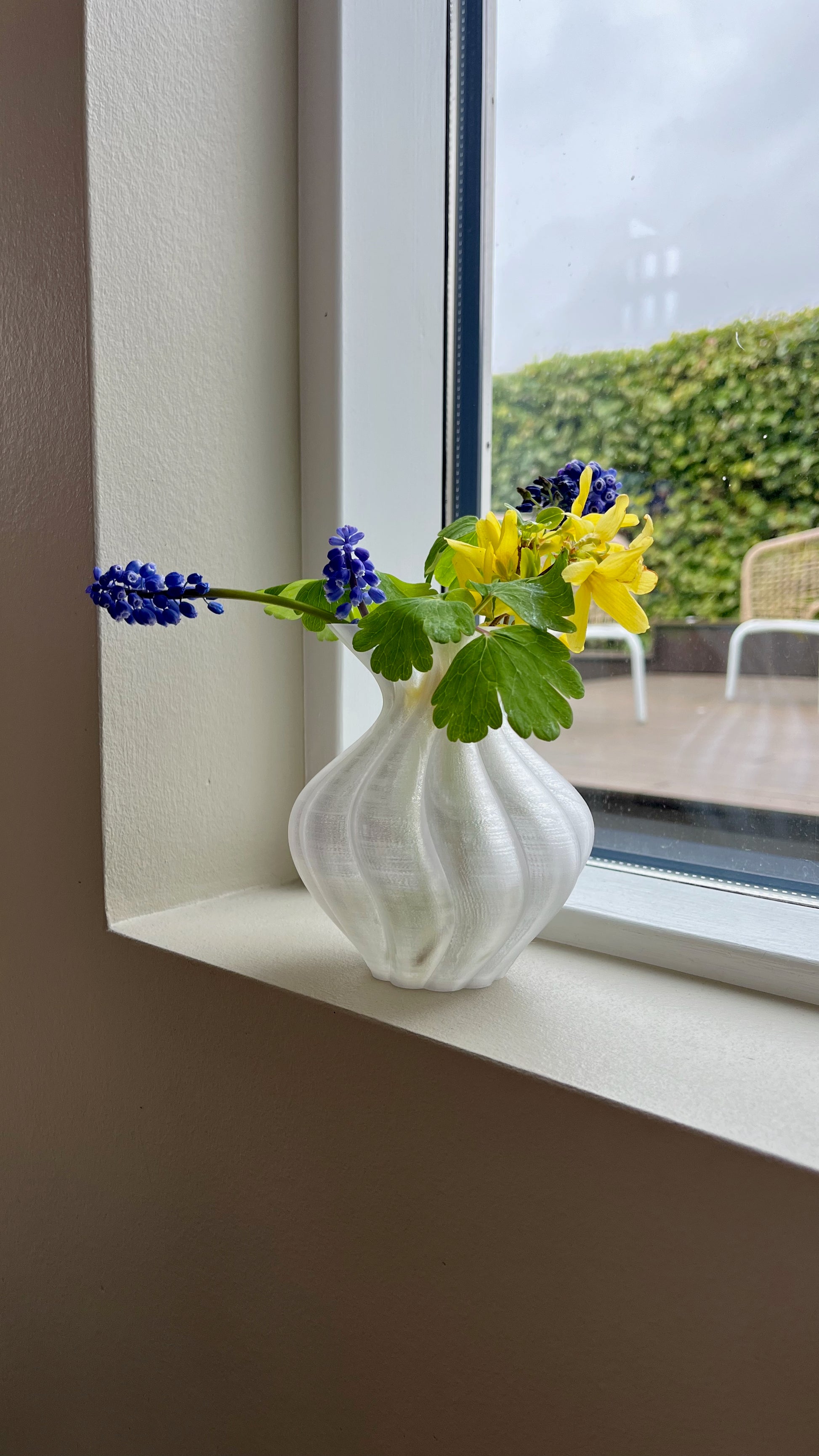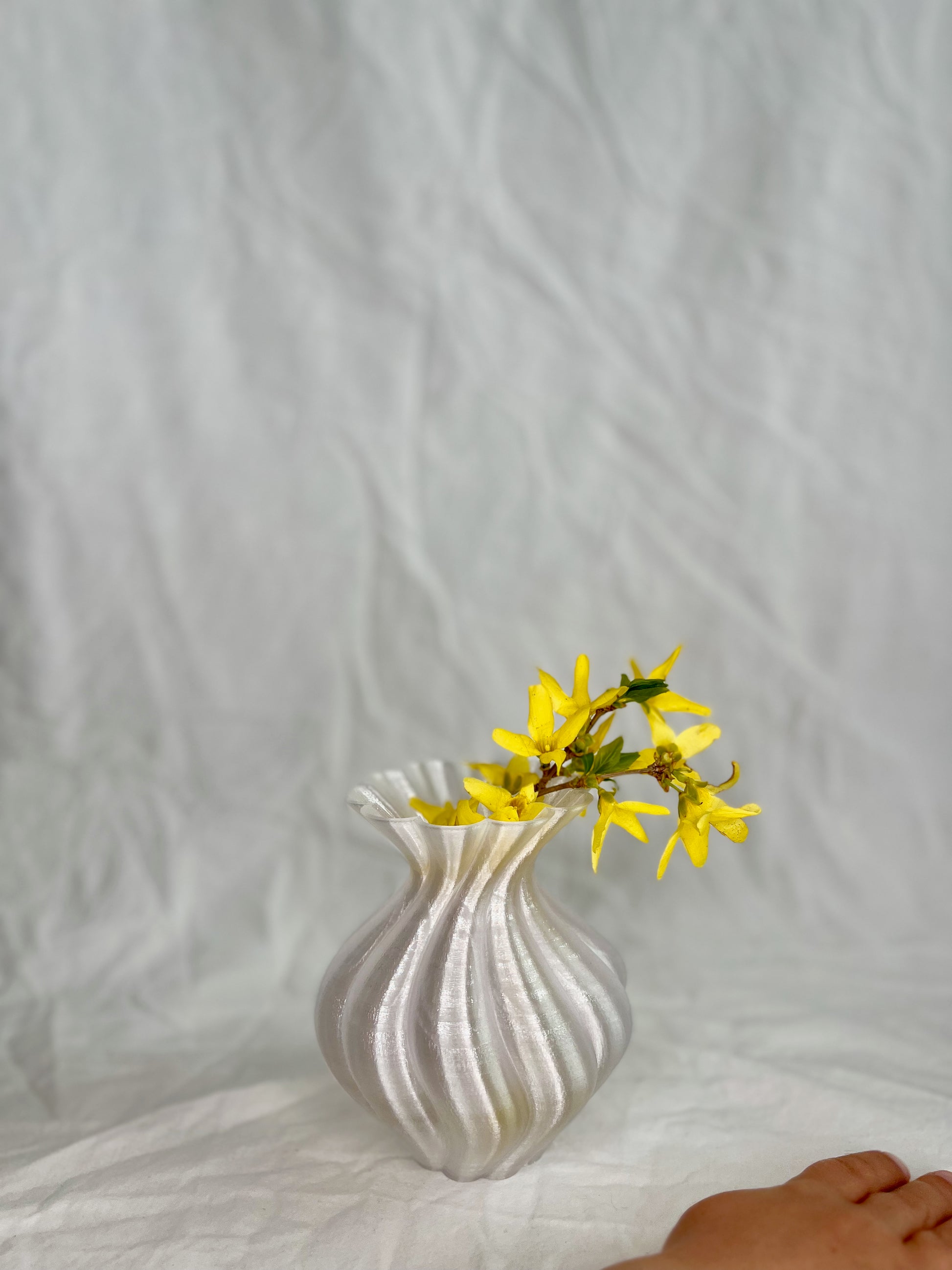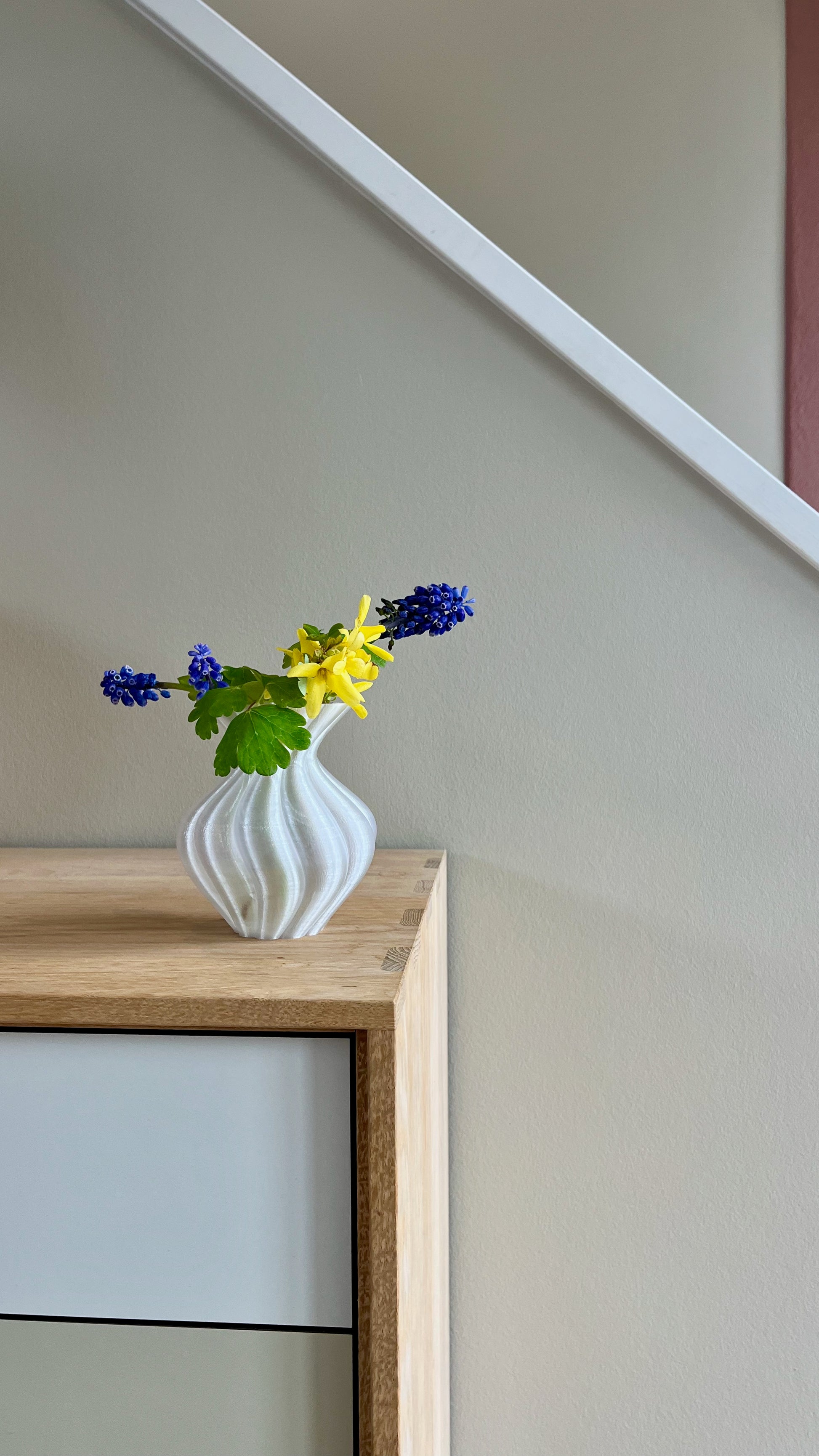Designet af LulubaDullu og 3D-printet i holdbart PETG i vores eget værksted. Estella Mini passer smukt ind i stilleben, på små hylder eller som makker til den større Estella-vase.